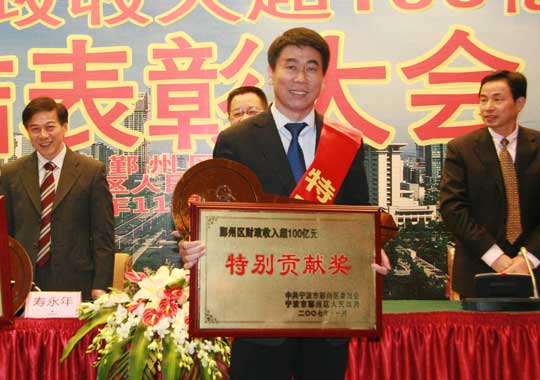 Guangbo Group wins taxation special contribution award in Yinzhou District. On January 26, President Wang Liping represents Guangbo Group attending commendation conference of financial revenue over 10 billion in Yinzhou District, and he accepts commendation from leaders of district.