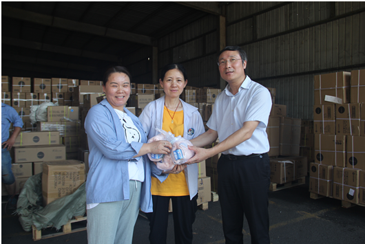 July 28,another high temperature day, Shu Yueping, chairman of the trade union and chief executive of Guangbo group, led the members of the trade union, the group office, the party office and other comrades to the production line to comfort the employees. General manager Shu sent towels, washing liquid, iced drinks and other comforting articles to the loading and unloading personnel, economic police personnel on duty and warehouse personnel in high temperature environment, and encouraged them to pay special attention to safety and take care of their health in summer production.