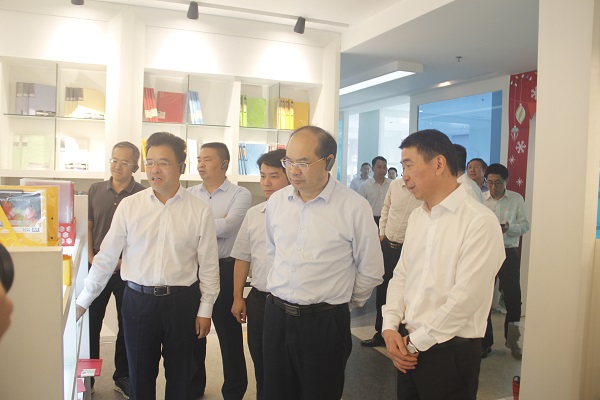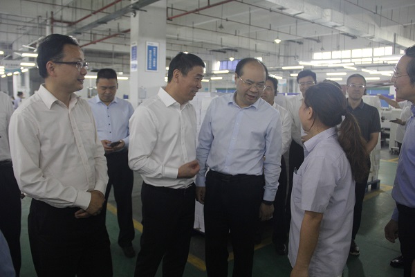 Governor Huang Xingwen and his party first went to the exhibition hall on the first floor, visited the exhibits of Guangbo Group, and then arrived at the sample room on the tenth floor. The delegation highly praised Guangbo Group's diversified and personalized product line.