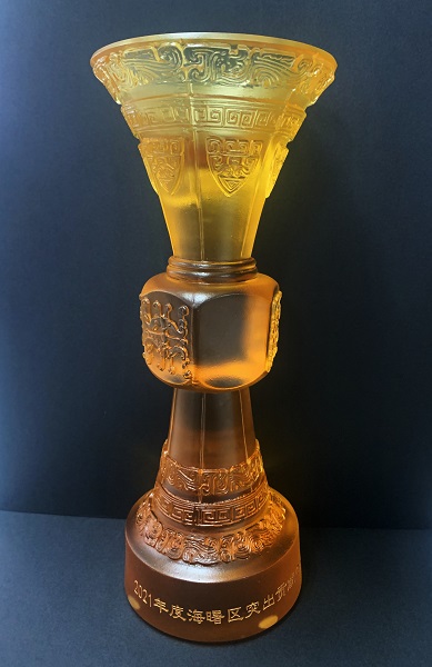 Wang Liping, chairman of Guangbo Group, won the title of outstanding contribution entrepreneur in Haishu district.
