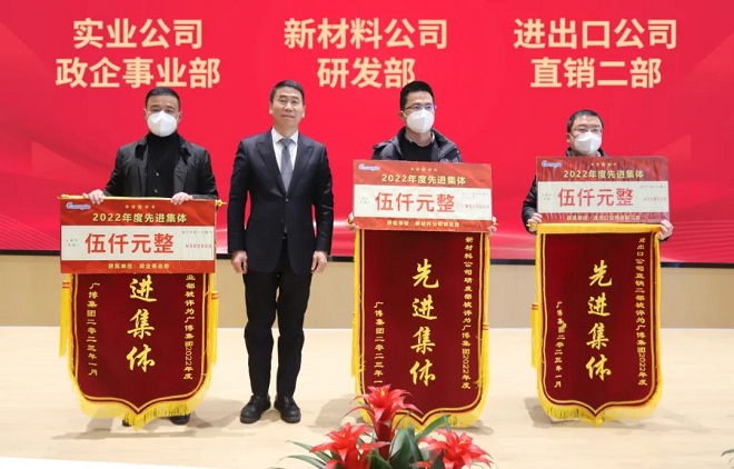 Subsequently, the conference commended the advanced collective and outstanding management cadres in 2022 and affirmed the value they created in their work. Chairman Wang Liping and general manager Wang Junping presented awards to them respectively.