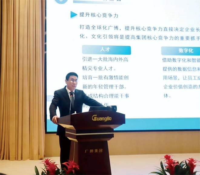 Building a global Guangbo and improving core competitiveness directly determine the long-term and steady development and progress of enterprises. In terms of talents, we will continue to introduce high-level, sophisticated and professional talents at home and abroad, cultivate a group of young management cadres with passion and innovation, and form a staff team with reasonable structure and ability to do things.In terms of digitalization, with the help of information and application scenarios provided by big data, let employees become the community of enterprise value creation. As a global group enterprise, through the effective guidance of corporate culture, we can empower employees at home and abroad and upstream and downstream enterprises to jointly build a virtuous development ecosystem.