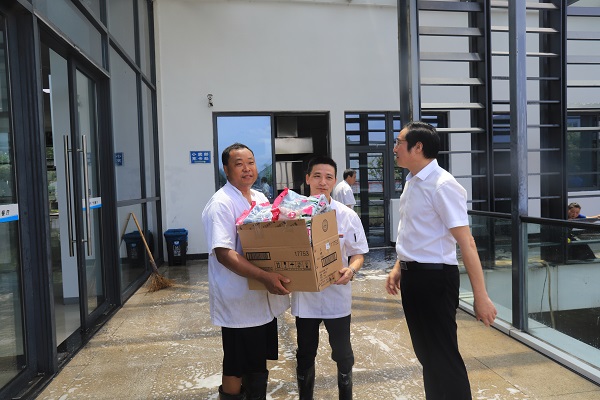 On July 7th, Shu Yueping, deputy secretary of the Party committee and chairman of the trade union of the Group company, visited the cafeteria, warehouse, and economic police team respectively, sending warm condolences to the employees who adhered to the front line and expressing gratitude for their hard work.