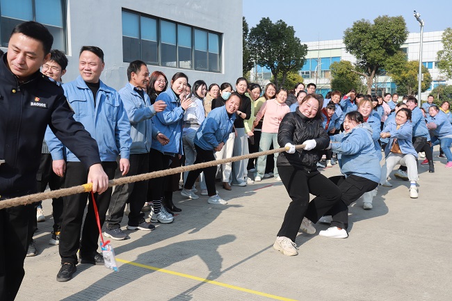 In the afternoon, 10 groups of heroic tug of war teams composed of female employees from various departments of the group company engaged in a fierce tug of war competition. The game officially began with a whistle from the referee.The contestants lowered their bodies, lowered their center of gravity, and exerted all their strength to tighten the rope, engaging in a power and passion competition with their opponents.Their indomitable spirit of fighting and never giving up infected the audience who were watching and cheering, and the cheers on the scene were endless. The atmosphere at the competition venue was high, fully demonstrating the spirit of women's hard work and competition.