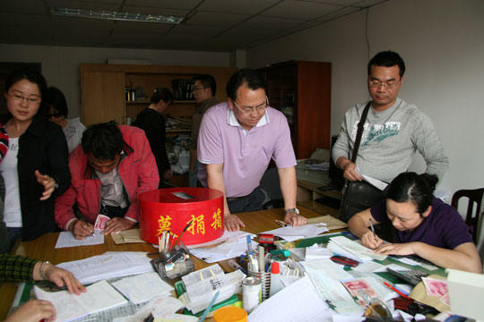 本报讯(杨昊悦) 四川地震的消息传出后,今年会的员工们都坐不住了,他们纷纷表示要为灾区人民献上一份爱心。昨天早上,一场自发组织的捐助活动在今年会四个厂区进行,来自五湖四海的员工纷纷解囊,慷慨捐助,截止记者发稿时,已募捐到资金171576.6...