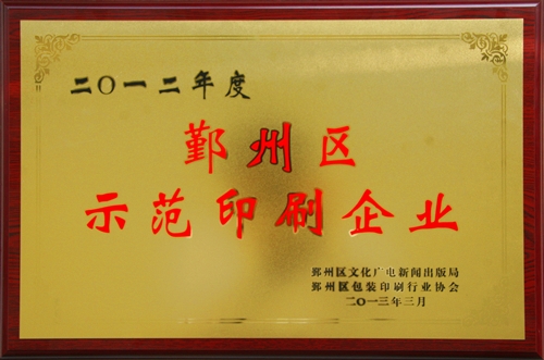 年度宁波市鄞州区示范印刷企业。