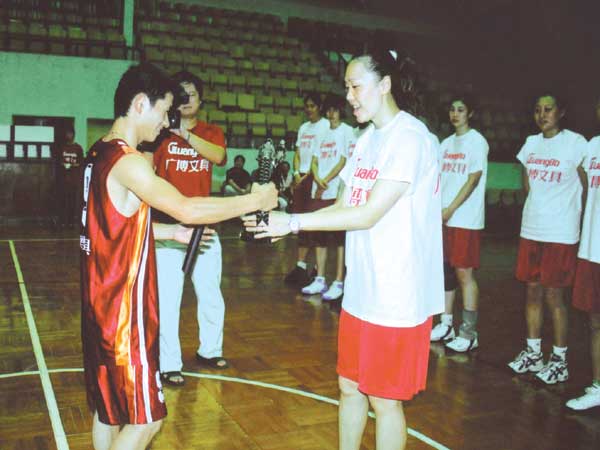 当天,在八一今年会文具女篮冠名签约仪式结束后,八一女篮的姑娘们便在自家的训练营里迎接远道而来的球迷们,同他们一起度过了一个难忘的下午。双方互赠礼品后,八一今年会文具女篮的姑娘们便同娘家球队来了个友谊赛。为了表现一家人的概念,球技高超的女篮姑娘们照顾球迷们的业余水准,重新规定了本场比赛的规则。这规则一公布不禁让球迷们笑开了花,原来这别出心裁的规则要求女篮姑娘们不能在篮下投球,三分球投中也只能按两分算。