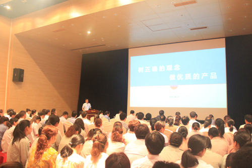 为进一步完善公司产品质量及服务质量体系,提升公司在市场的综合竞争力,6月21日下午,公司在一楼报告厅召开产品分析会议,生产、内销系统140余人参加了本次会议,集团公司总经理王君平、副总经理戴国平出席会议,实业公司总经理姜珠国主持会议。
