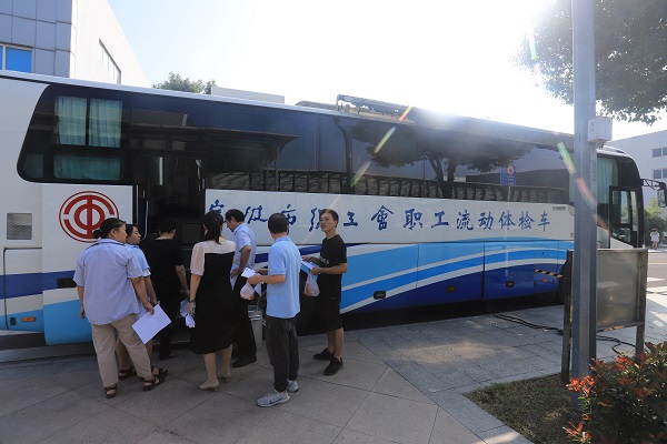 今年会工业园区,一辆移动体检车映入眼帘,园区的员工们排队依次进入体检车内进行体检。将“体检车”开进企业,提供“上门体检服务”,这种体检方式即能方便员工体检,又不耽误生产,省时省力。