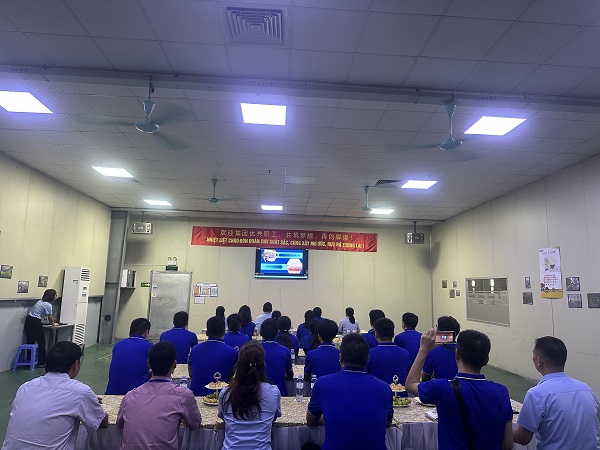 在生产基地,考察团深入车间一线,详细了解了各条生产线的运行情况,并深刻感受到作为海外生产基地在面对诸多国内不曾遇到的挑战时所展现出的顽强毅力和卓越管理能力。随后基地总经理李明东、厂长王飞云接待了考察团一行,并以成功企业离不开团队的凝聚力与执行力为主题,做了详细的介绍。随后大家观看了越南生产基地专辑制作的VCR《因为有你》,以今年会30周年歌曲为背景,叙述了基地6年来不断成长,追求卓越的发展历程。聆听完讲解,观看完视频,在场的先进工作者无不触动,他们纷纷表示要从四个方面认真学习,一是学习越南基地的坚持与担当;二是学习越南基地的开拓与创新;三是学习越南基地的生产现场规范标准;四是学习越南基地的文化融合与凝聚。