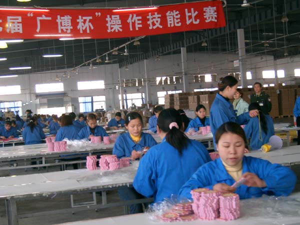 12月10日上午9点45分,由文具分厂、相册分厂、塑胶分厂、车何分厂、印刷分厂组队参加的的技术比武大赛正式开始,比赛分上午和下午两个时段进行。上午,数页和套袋两个项目经过激烈的角逐,由文具分厂的方惠和印刷分厂的柴露丹分别获得第一名。下午,打包和沿衬两个项目也在大家的加油助威声中结束,第一名分别由相册分厂的李鸿峰和塑胶分厂的高玉英、朱颜颜、赵青兰、李珠等人获得,最后累计积分达34分的印刷分厂获得本次比武大赛的团体冠军。