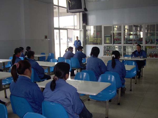 为加快新进员工的培养,使之尽快熟悉公司的行政管理制度,明确厂纪厂规 , 从而规范生产,保证公司产品质量。公司每三个月开展一次的新员工岗前培训于 12 月 13 日下午两点在食堂一楼开展,培训由生产计划中心主任吴军强主任主持。到场的近百人新员工认真听取了吴主任对公司制度的详细解说。