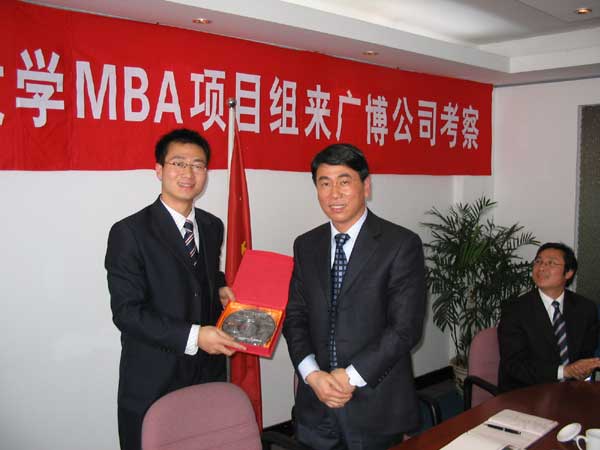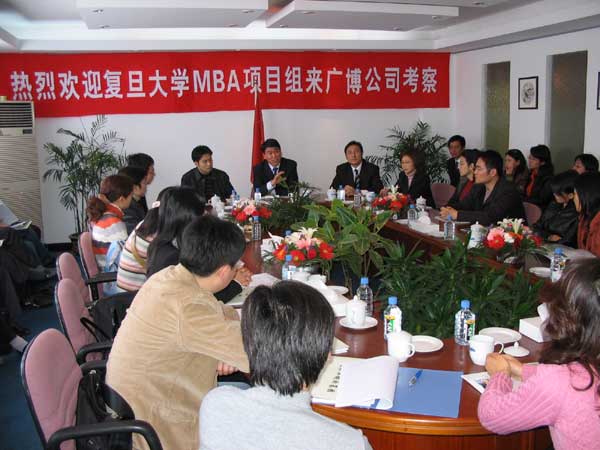 12 月 17 日,复旦大学管理学院 2003 级国际 MBA 项目组 30 余名学生来今年会参观,公司负责人带领他们参观了数码公司生产车间.董事长王利平就今年会目前的发展情况及今后的发展规划作了详细的介绍,并与他们热烈讨论,希望他们日后也能成为今年会大家庭中的一员.