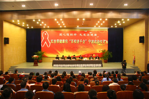 活动启动,来自宁波诺丁汉大学等三所高校的志愿者将一个个红丝带健康包,发放给今年会的职工。健康包内有一条毛巾、一副印着防艾宣传画的扑克牌、一盒安全套、一套指甲剪和一本艾滋病防治知识手册等。至本月月底,这三所高校志愿者将会进入雅戈尔、培罗成等本地大型企业,向企业职工宣传艾滋病防治知识,发放