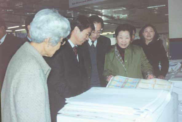 潘蓓蕾副会长一行先后考察了印刷分厂、塑胶分厂、纳米公司、数码公司以及技术开发部和集团图书馆。考察组一行首先来到今年会印刷分厂,看到员工们正在流水线上